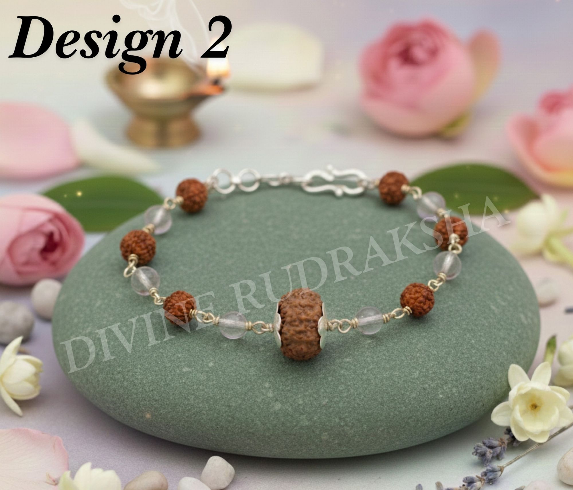 Design 2 : This design is made with one bead of 13 Mukhi Indonesian Rudraksha ( of around 12-14 mm approx ) and small beads of 5 Mukhi Indonesian Rudrakshas & Crystal beads ( of around 7-8 mm approx ).