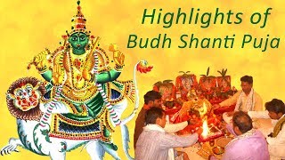 Swasti Vachan, Shanti Path, Sankalp, Ganesh Sthapan, Kalash Sthapan, Lakshmi Sthapan, Budh Dev Sthapan, Navgrah Sthapan, Brahma Sthapan, Agni Sthapan, Invocation of all Gods and Goddesses, Navgrah Mantra Japa (1 mala for each planet), Budh Yantra Puja, Budh Mantra Japa, Lord Shiva Puja, Goddess Durga Puja, Budh Homam with Honey, Ghee, Sugar, Til, Ashtagandh, Sandalwood powder, Navgrah Samidha and then Purnahuti, Aarti, Offerings for Budh Shanti and Prasad to Brahmins.