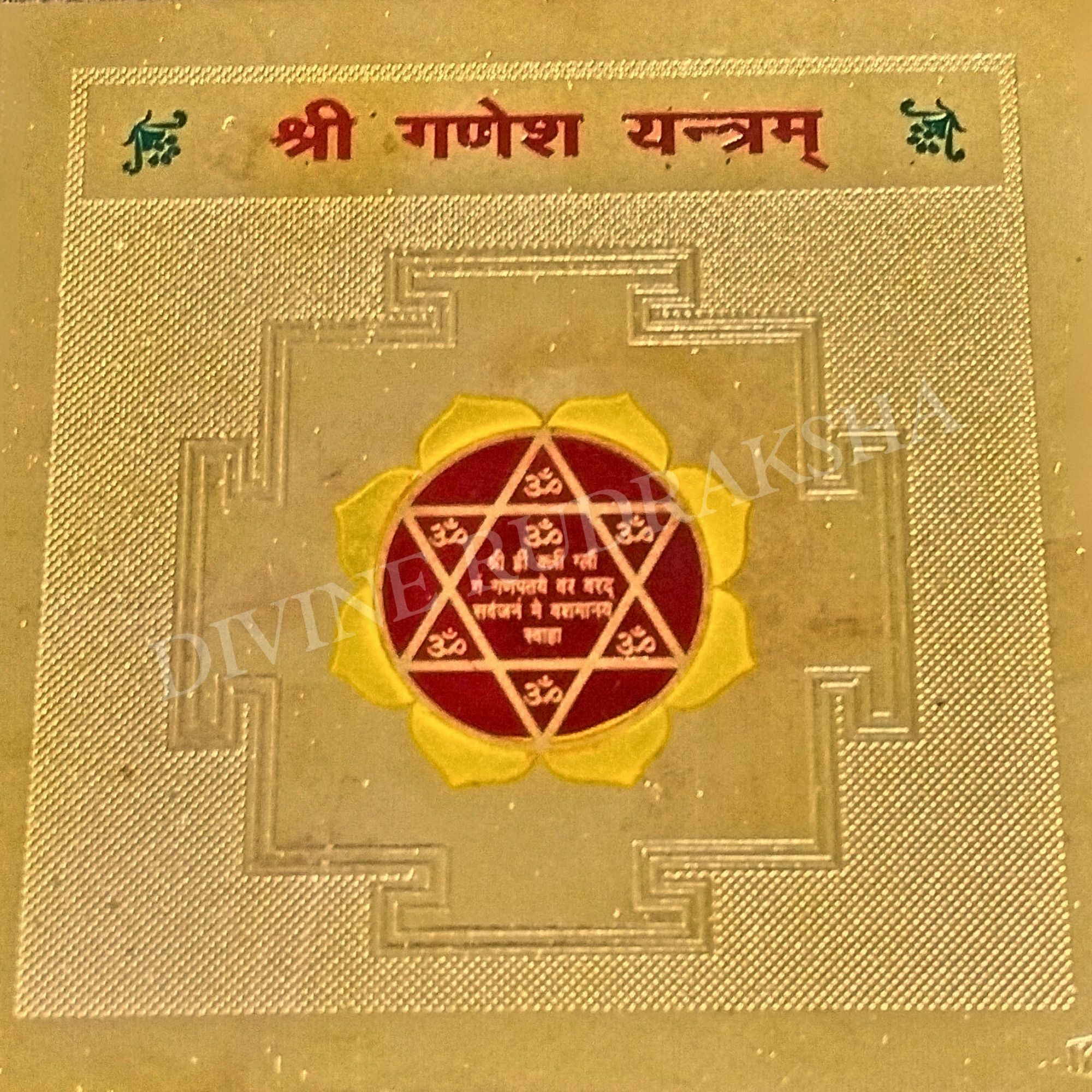 Ganesha Yantra should be installed and worshipped before beginning of any work or for removal of all kinds of Obstacles and Problems. If a person worships this Yantra, then all his obstacles are wiped out and he gets Success in every venture that he undertakes. Lord Ganesha is the promoter of Success, Intelligence, Education, Knowledge, Wisdom, Art, Talent as well as Wealth & Prosperity. Lord Ganesha is the younger son of Lord Shiva & Goddess Parvati. Lord Ganesha is also famous as Vighnaharta (Remover of Obstacles) and is therefore worshipped first before commencement of any auspicious ritual or occasion. He is ever-blissful and is faithfully worshipped by millions of people worldwide. There are several names of Lord Ganesha like Vighnaharta, Ashtavinayaka, Ekadanta, Gajanan, Vakratunda and Ganpati. Lord Ganesha is worshipped without fail before starting any important work like a new Business, House construction or any other undertaking. The sacred recital "Om" is a manifestation of Lord Ganesha and therefore it is chanted prior to any other ritualistic recitals. In Om, the above arc is said to be the face of Lord Ganesha. The lower arc is his belly. The twisted arc which is on the right side of the Om is his trunk. Thus Omkara represents the entire physical form of Lord Ganesha. Lord Ganesha is worshipped for Riddhi (wealth ),Siddhi (success) & Buddhi (intelligence). Guru Adi Shankaracharya has recommended that every home should establish Ganesha Yantra on its outer door or wall to get protection from all evils.