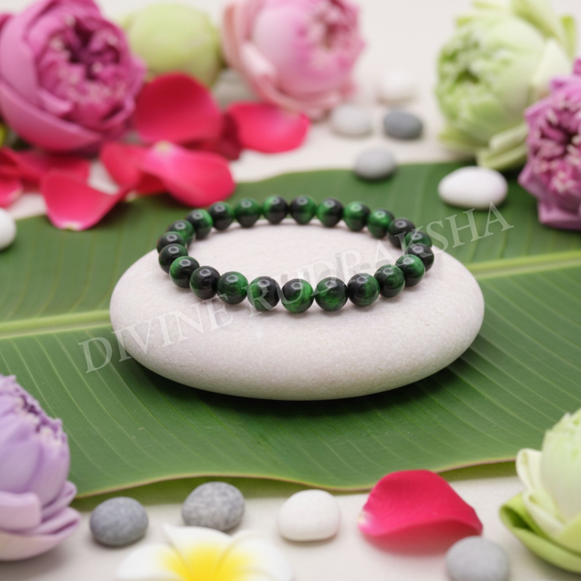 Green Tiger Eye stone is believed to enforce mental strength and protects the wearer from surrounding pressure and expectations, as well as bestows strength & courage to move forward in life. Green Tiger Eye wrist band can help in your character development and at the same time, can enhance your personal will. Also, it can help in fulfilling your desires and plans. It gives you the courage and inspiration to make your space in society. It adds stability, relaxation and fun to life.