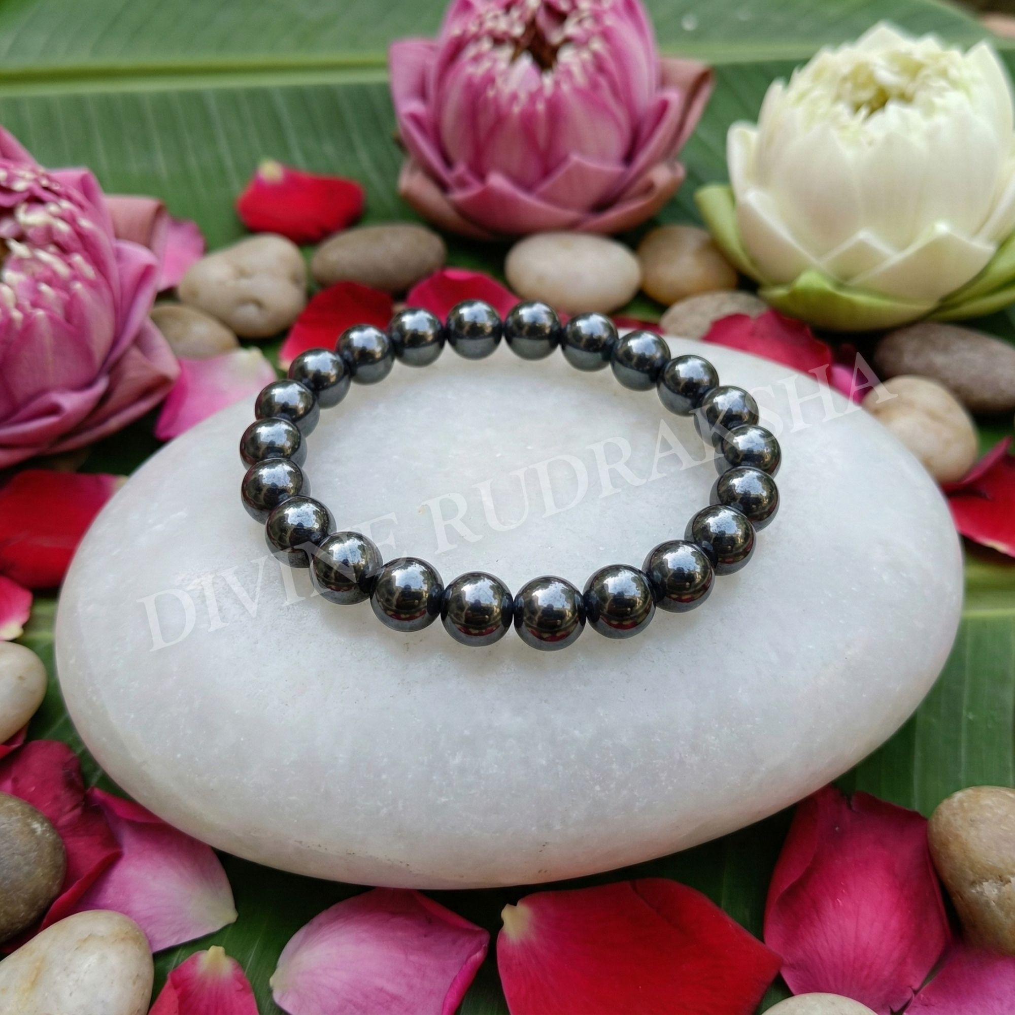 Hematite stone is known as "stone for the mind", since it strengthens our connection with mother earth, thereby making us feel safe and secure. It fills up the wearer with courage, vigour, endurance and liveliness. It also elevates the concentration and focus of the wearer and boosts the memory power and original thoughts. Not only this, but it also dissolves the negativities and prevents one from absorbing the negative powers of others. Hematite stone has natural healing properties, which restores, strengthens and regulates the blood supply, as well as stimulates the absorption of iron and helps in formation of red blood cells, as per ancient vedic texts. It also protects the surrounding, where it is kept, and is a great Feng Shui stone for work place, as it enhances the concentration power and indigenous skills. Haematite stone bracelet is believed to be effective for activating and balancing the Root Chakra as well, which can help in maintaining healthy energy levels.