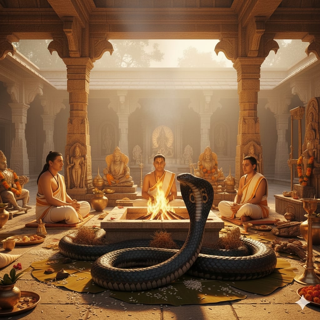 Swasti Vachan, Shanti Path, Sankalp, Ganesh Sthapan, Kalash Sthapan, Lakshmi Sthapan, Sthapan of Nav Naag / 9 Snakes (Anantam, Vasuki, Shesham, Padmanabham, Kambalam, Shankhpalam, Dhatrarashtram, Takshkam, Kaliyam), Shiv Abhishekam, Navgrah Sthapan, Brahma Sthapan, Agni Sthapan, Invocation of all Gods and Goddesses, Navgrah Mantra Japa (1 mala for each planet), Naag Suktam Path, Mansha Devi Stotra Path, Rahu & Ketu Japa, Kaal Purush Smaran, Homam with Honey, Ghee, Sugar, Til, Ashtagandh, Sandalwood powder, Navgrah Samidha and then Purnahuti, Aarti and Prasad to Brahmins, Dispersion of Naag Naagin in running water or Lord Shiva Temple.