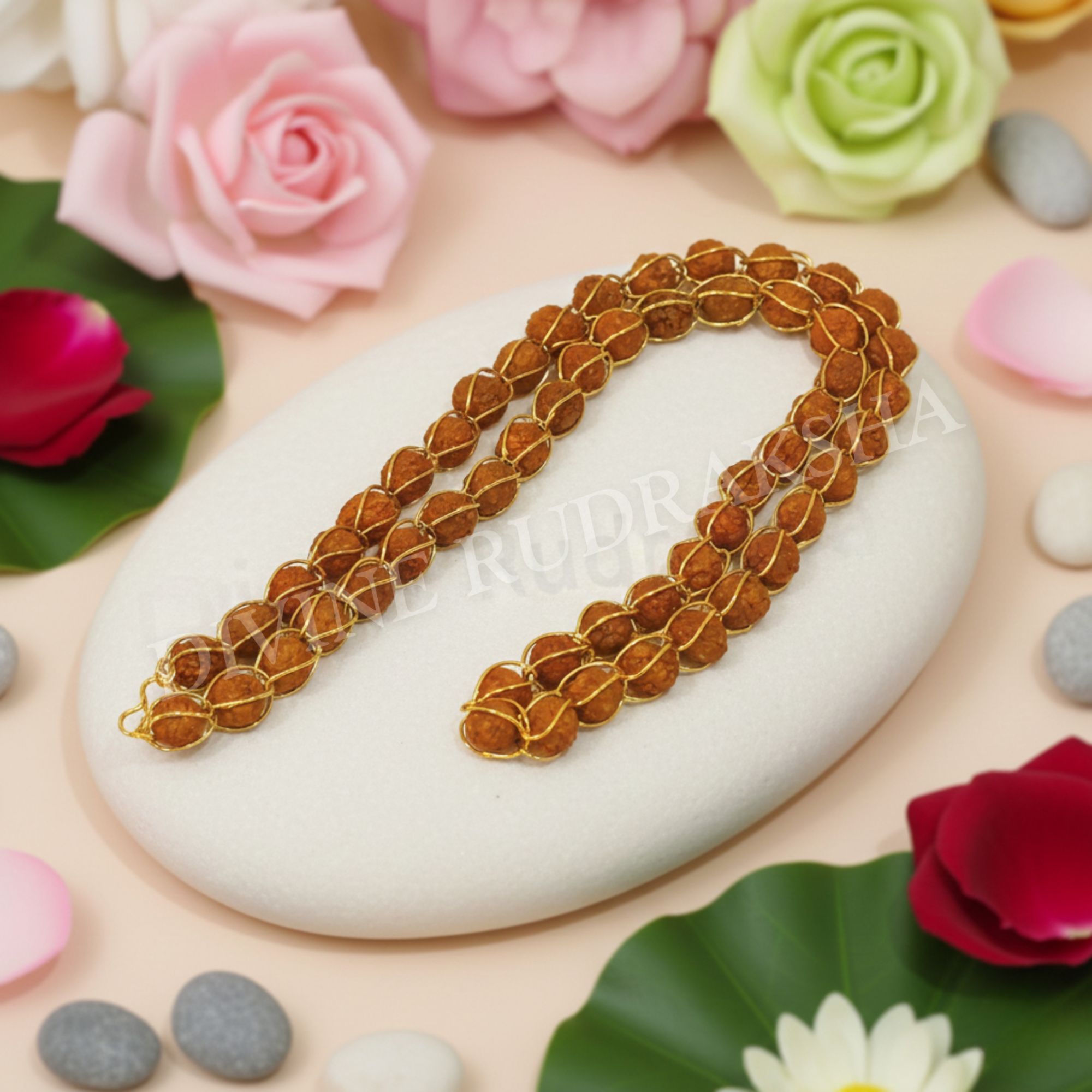 Information about 5 Mukhi Indonesian Rudraksha Mala ( 54 + 1 beads ) with Golden Loops