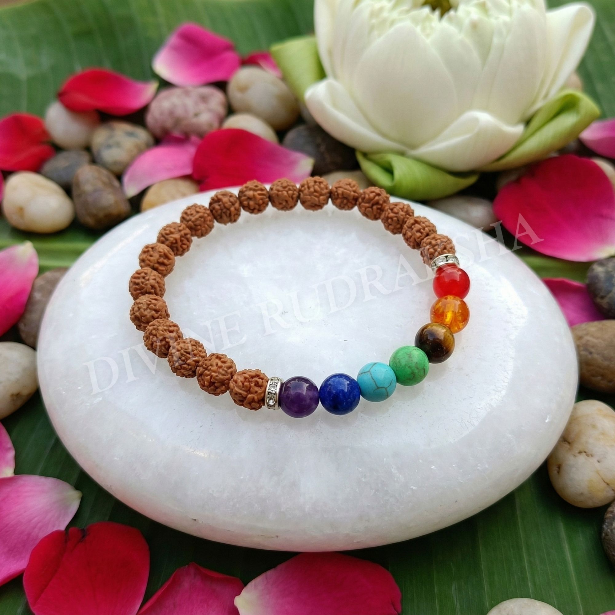 - As per Ancient Vedic Texts, Seven Chakras with Rudraksha Bracelet is very helpful for the regulation of Blood Pressure, Body Fats and various health ailments related to Chakras of the body.