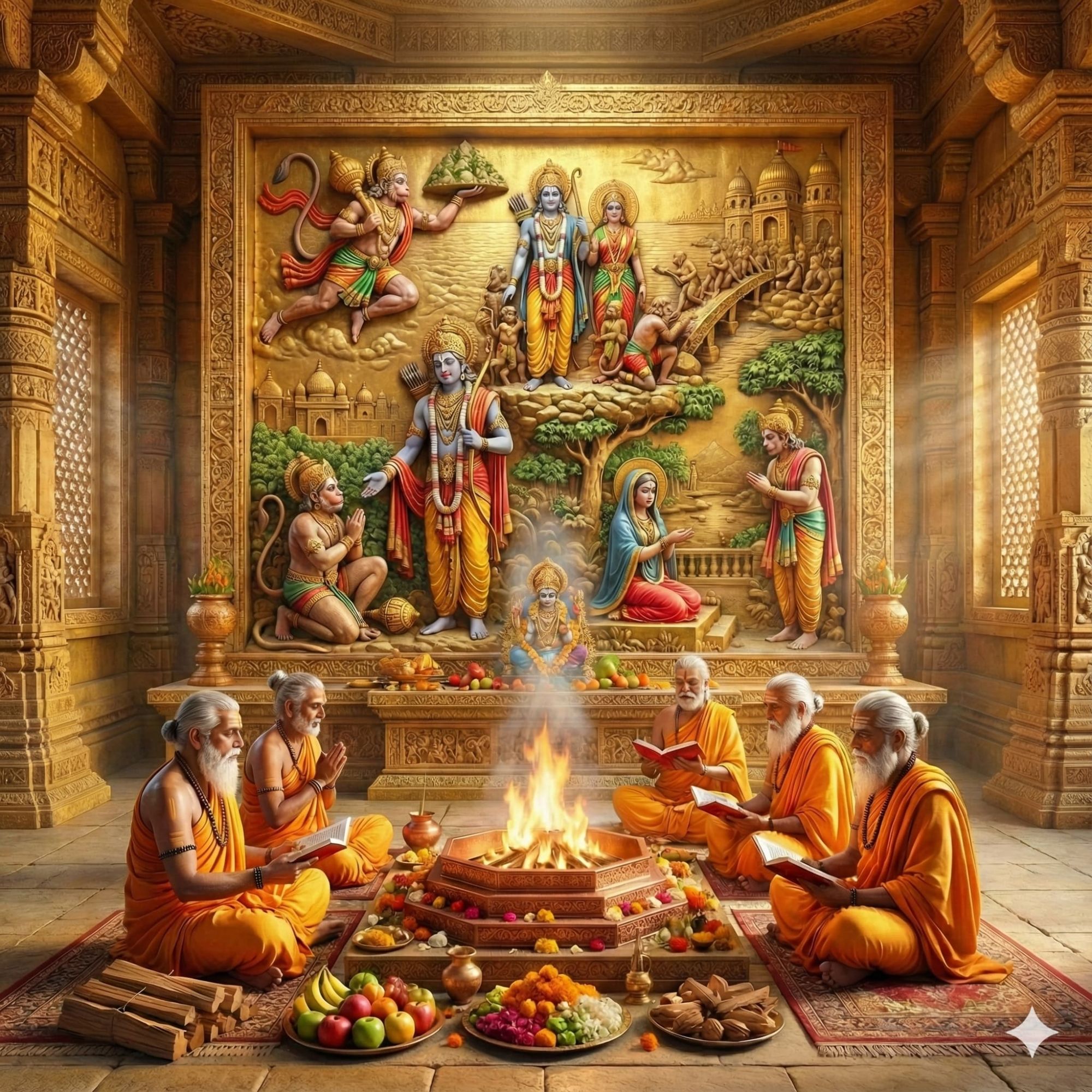 Ganesh Puja, Installation of Lord Hanuman Idol, Hanuman Vandana, Sunderkand Path (with samput after every Doha), Hanuman Chalisa, Bajrang Baan, Hanuman Ashtak, Lord Rama Vandana and Aarti