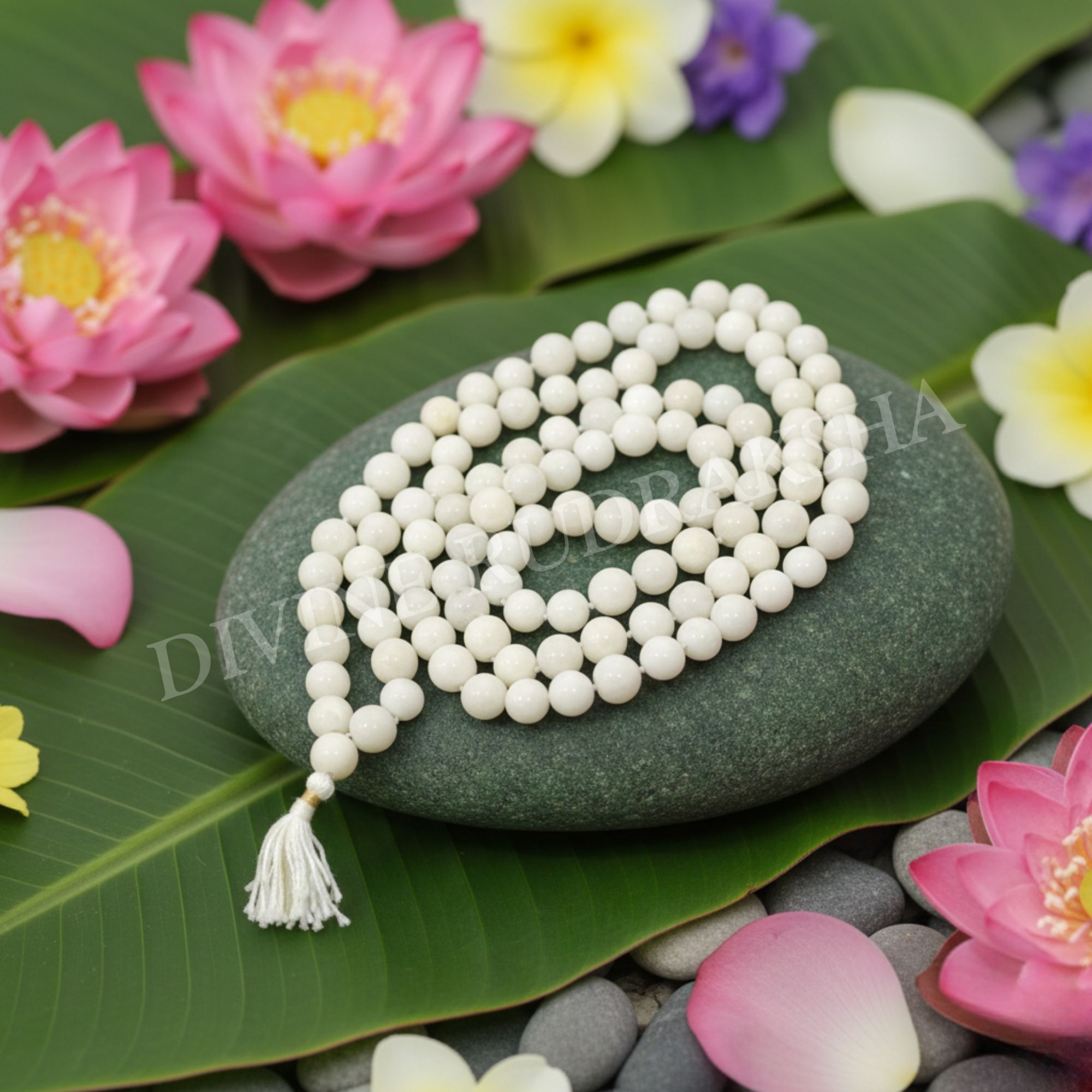 This White Agate Mala should be used to pacify the malefic effects of Planet Moon or to strengthen this planet in ones Horoscope. This mala can be worn by persons having their zodiac sign as Cancer (Kark Rashi) with wonderful results.